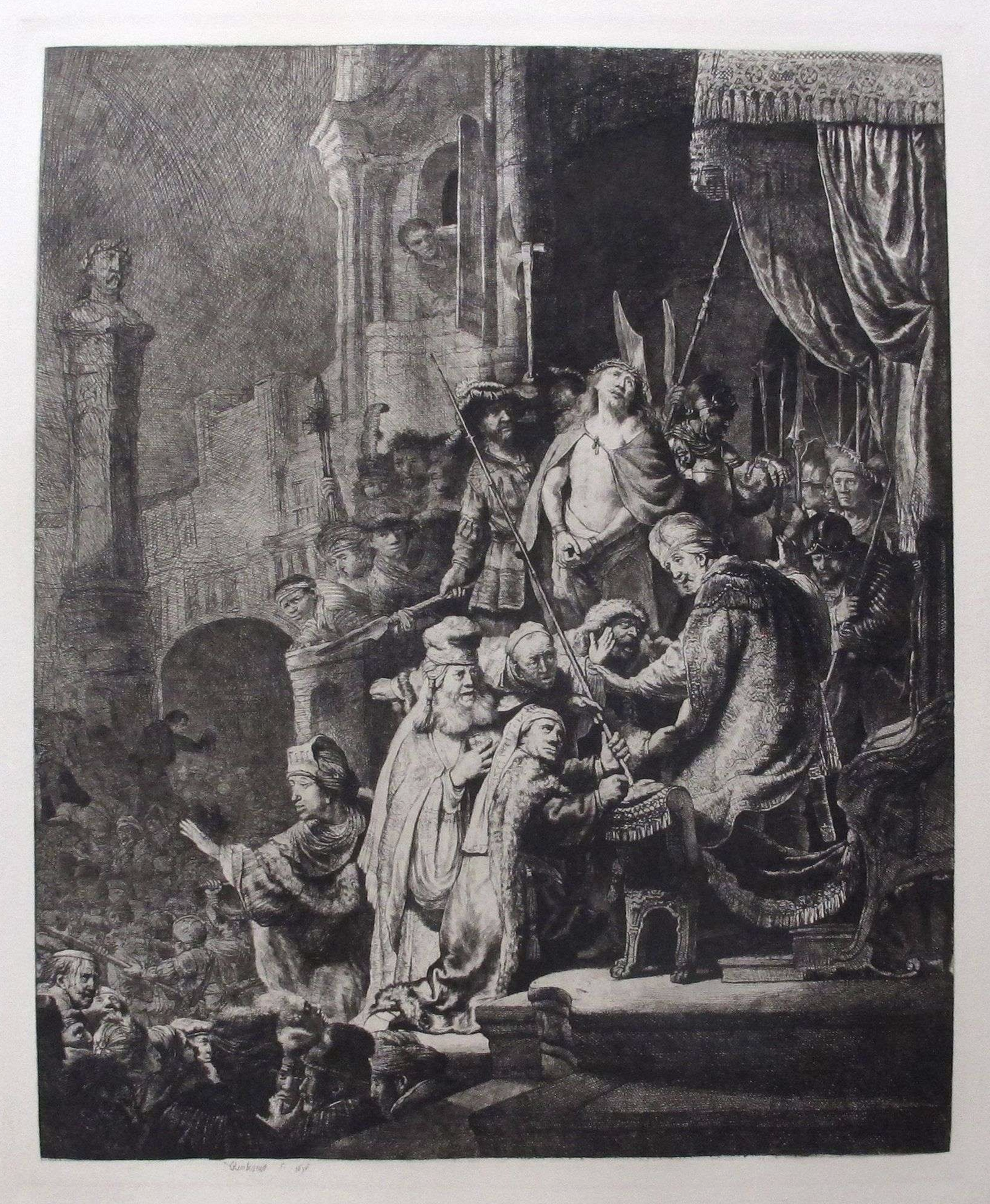 Description of Art: Christ Before Pilate is one of Rembrandt van Rijn’s most dramatic and ambitious biblical compositions, part of his celebrated Passion Series commissioned by Prince Frederick Henry of Orange between 1633 and 1639. This powerful work captures the climactic moment from the Gospel narratives when Christ stands before Pontius Pilate, facing judgment before the Roman governor.