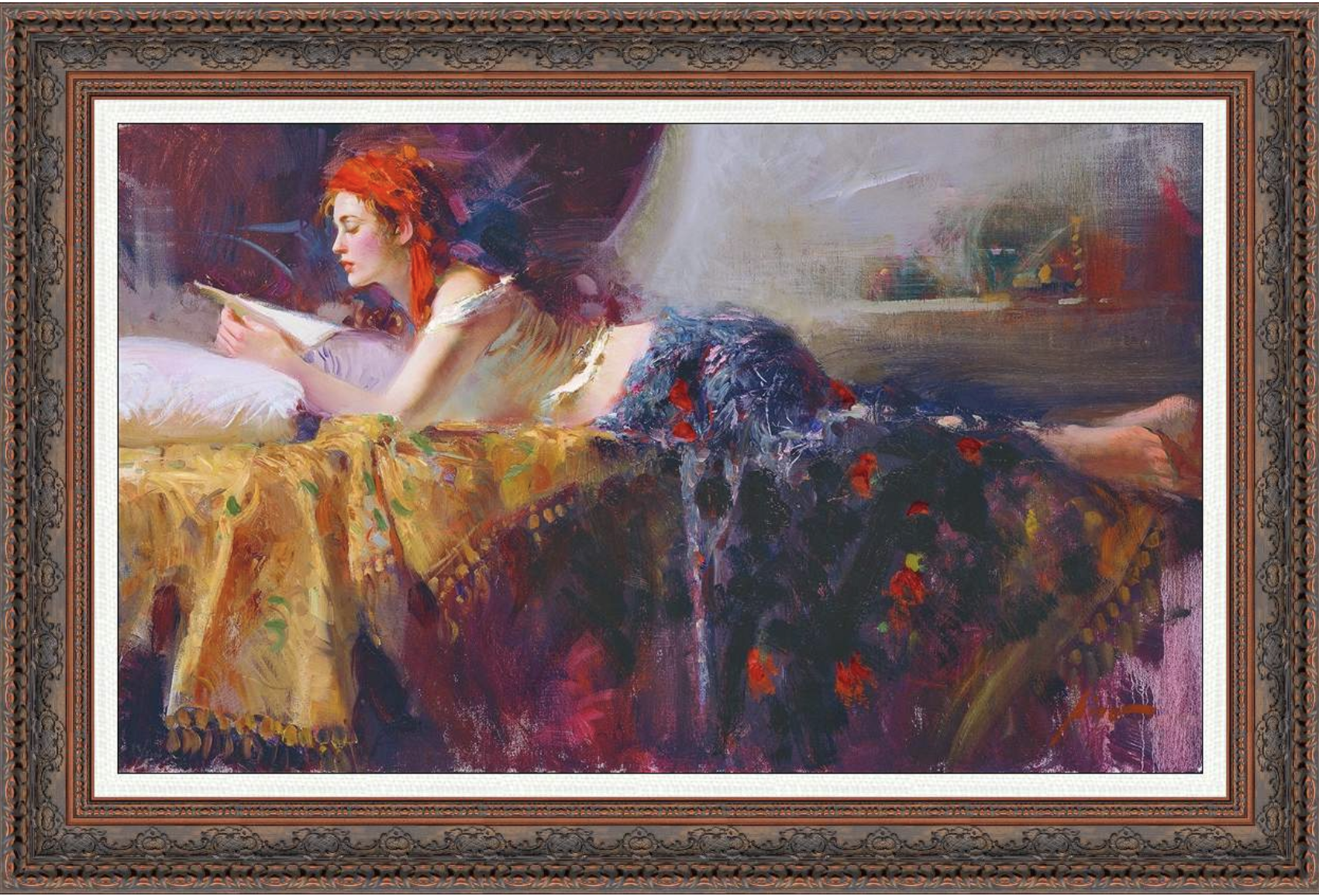 Description of Art: Twilight envelops a softly lit feminine figure poised at the boundary between day’s end and night’s beginning. The artist bathes the subject in diffused light—muted purples and gentle golds—while loose brushwork and soft edges evoke a moment of serene introspection. The subdued palette and fluid drapery enhance the scene’s quiet elegance, turning a fleeting dusk hour into a graceful visual ode to memory and presence.