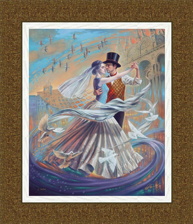 Description of Art: Dance with the Wind reflects Michael Cheval’s poetic surrealism, presenting a graceful figure caught in a moment of fluid motion where imagination and air seem to move as one. The composition blends elegant anatomy with symbolic elements, suggesting lightness, freedom, and the invisible forces that guide both body and spirit. Cheval’s refined detail, theatrical lighting, and softly shifting space create a dreamlike atmosphere in which movement feels effortless and lyrical. The painting captures a balance between control and surrender, transforming wind into a metaphor for creativity, emotion, and the quiet harmony between the human figure and the unseen world around it.