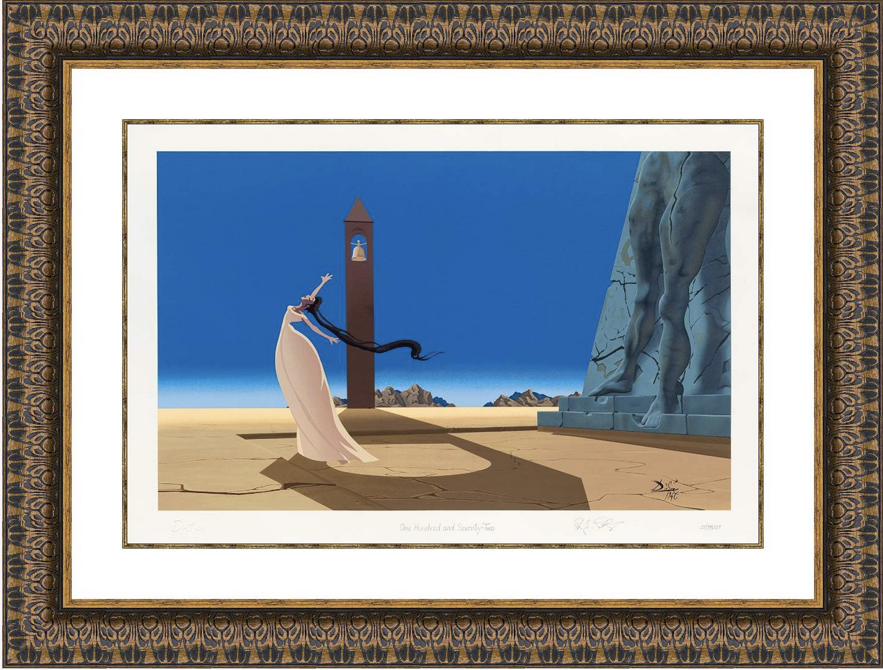 Description of Art: Destino #172 reflects Salvador Dalí’s surreal meditation on fate within the Destino series, presenting a dreamlike scene where figures and forms appear suspended in continual transformation. Elongated shapes and fluid contours dissolve into one another, suggesting movement guided by subconscious logic rather than physical reality. Soft color transitions and delicate line work create a cinematic atmosphere in which time feels elastic and symbolic. The painting captures Dalí’s poetic vision of destiny as an unfolding process, transforming inner emotion, memory, and surreal symbolism into a contemplative exploration of change, inevitability, and the unseen forces that shape human experience.