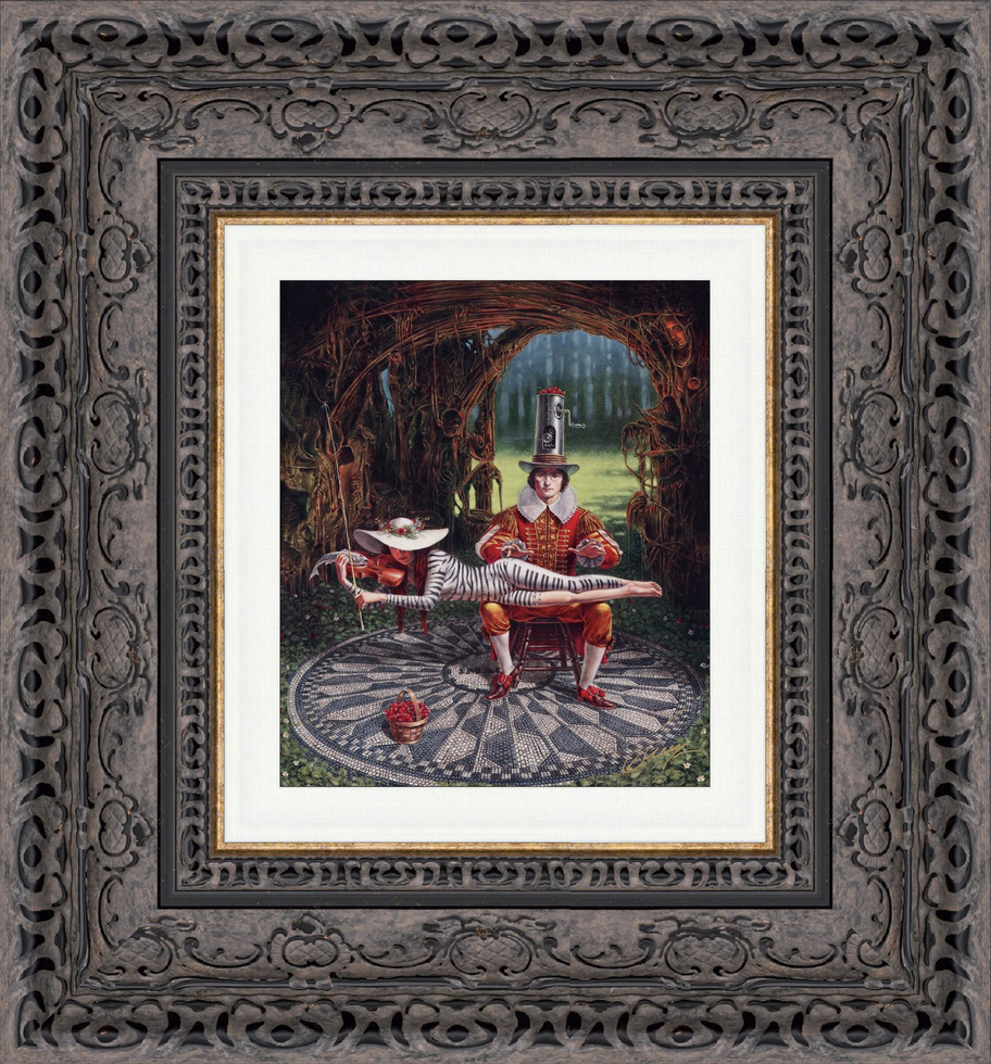 Description of Art: Imagine II is a playful and thought-provoking work by contemporary surrealist Michael Cheval, known for his philosophy of “Absurdism”—the art of interpreting reality through the prism of the impossible. This piece invites viewers into a dreamlike narrative where logic bends and whimsy takes over.