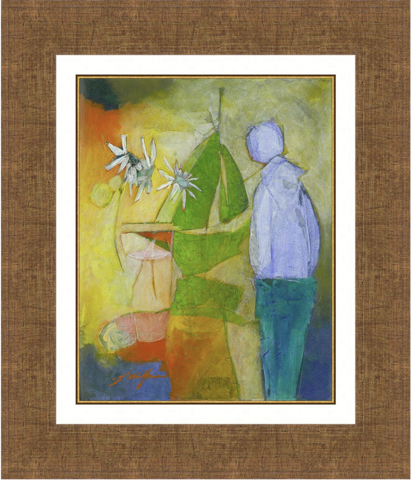 The painting conveys solitude, introspection, and the human connection to nature. Pondering at the Dock asks the viewer to pause with the subject, letting the quiet of dusk or dawn speak through color and stillness.