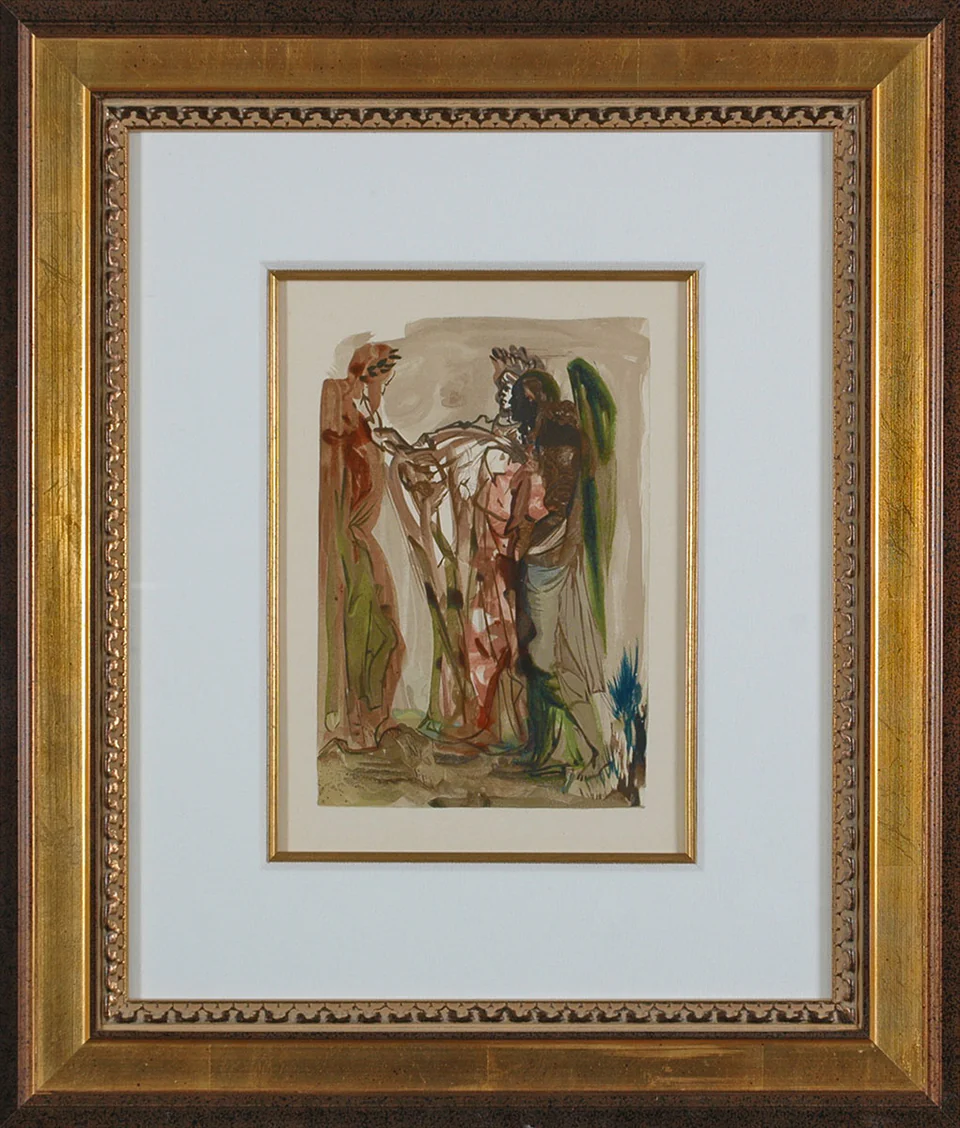In this work, Dalí distills the canto’s essence—a still, contemplative moment where the soul bends under the weight of its own history, yet moves steadily toward renewal. The scene radiates with understated emotional depth: a vision where humility becomes light, the path gently brightens, and the journey upward quietly begins.