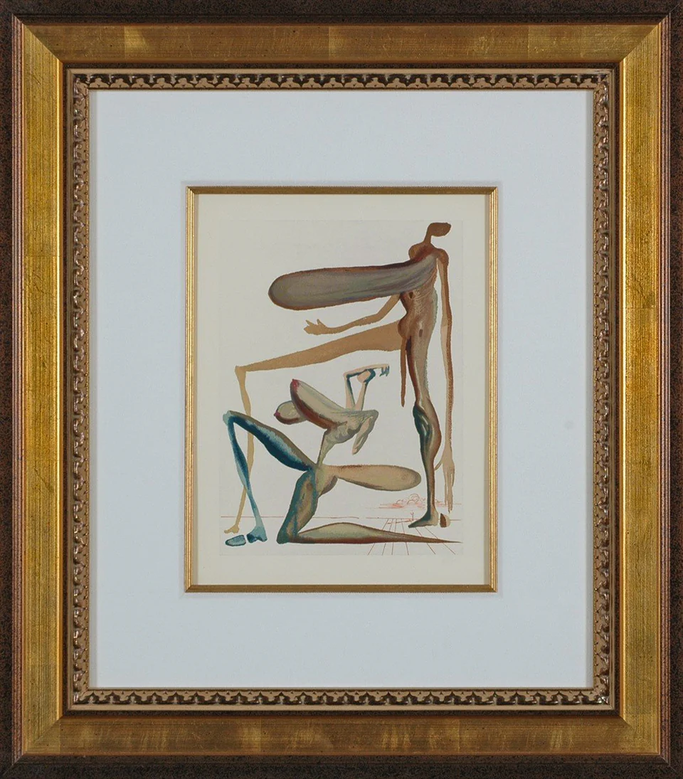 In this canto, Dalí distills the text’s core: the soul’s encounter with its own burden, the tender moment of surrender, and the faint glimmer of ascent. The result is an image of introspective quiet, where form hovers between being and becoming, and the boundary between the earthly and the divine grows thin.