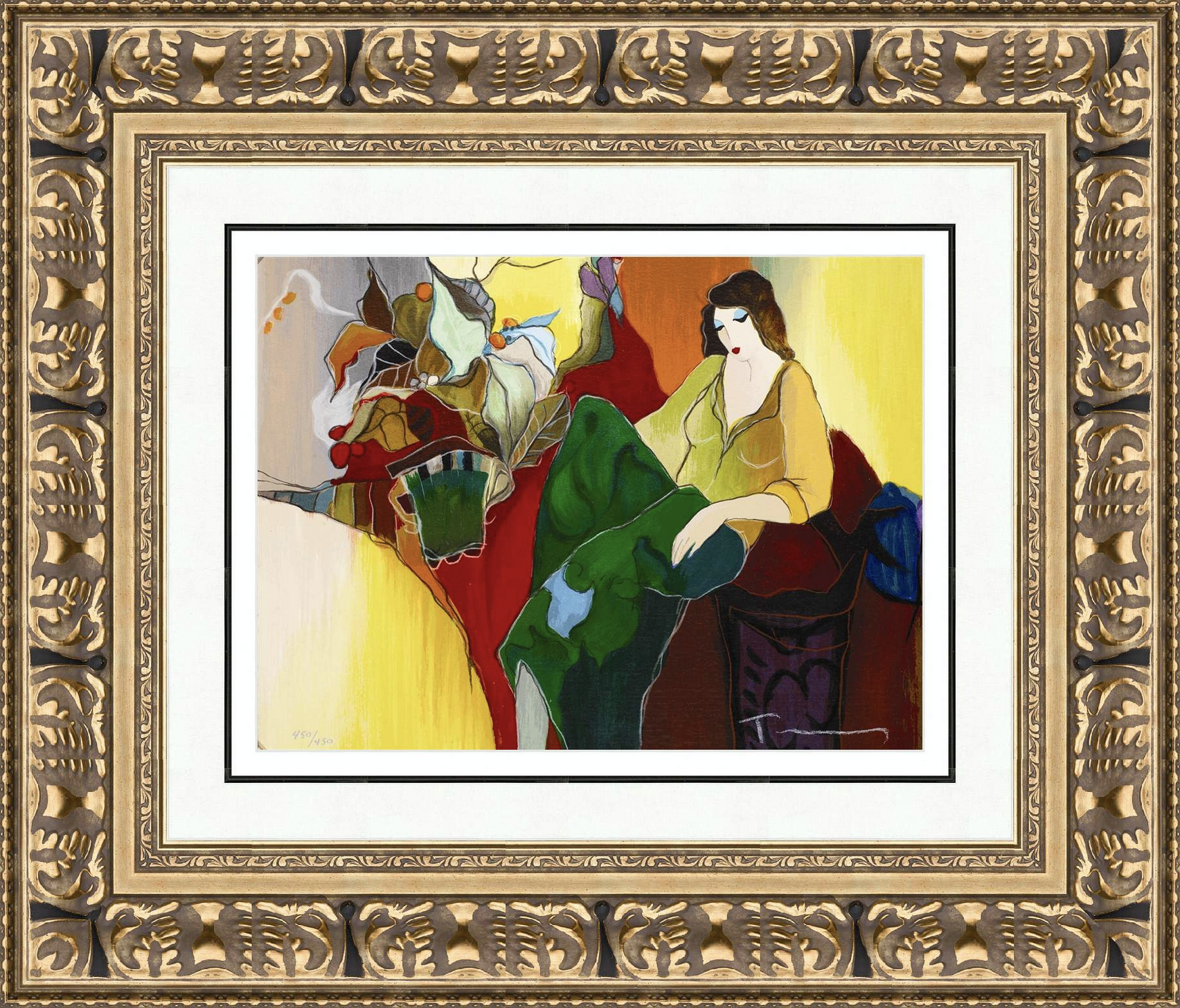 Description of Art: Serene Afternoon by Itzchak Tarkay captures a moment of quietly suspended elegance—one of his characteristic scenes where women are shown in repose, enveloped by soft color and harmony. In this piece, the subject is portrayed perhaps seated or leaning, caught in a private, contemplative posture in a refined interior or gentle outdoor setting.