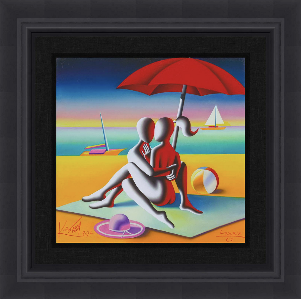 Description of Art: Summer Breeze captures a moment of lightness and tranquility through Mark Kostabi’s faceless, sculptural figures. The composition suggests a relaxed, almost dreamlike state—figures leaning, embracing, or standing in still harmony—as though gently carried by the warmth of a summer wind. Their smooth, featureless forms emphasize universality, allowing the viewer to project their own sense of memory and emotion into the scene.