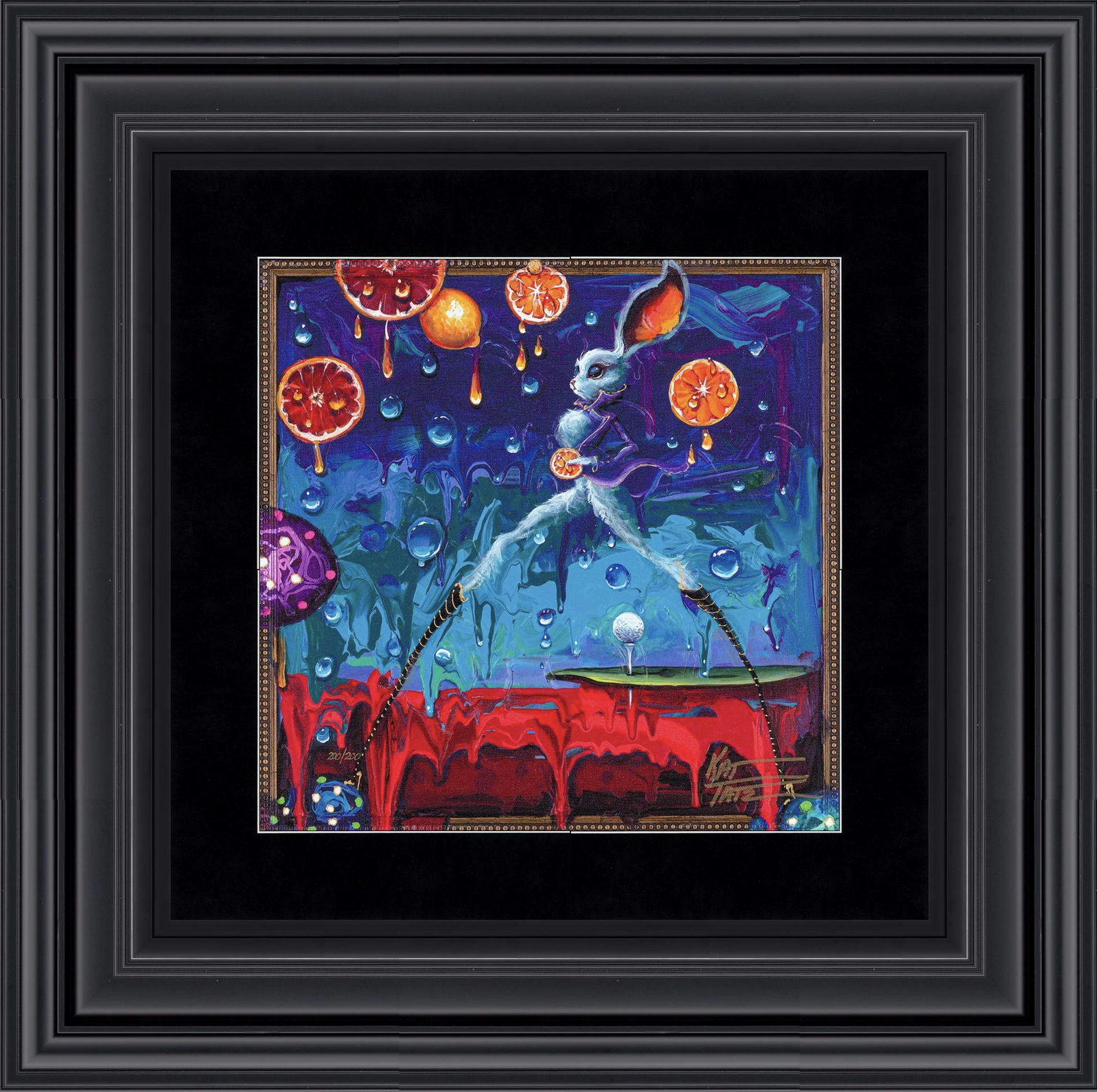 Description of Art: Tee Time stages a playful, storybook tableau that filters everyday ritual through Kat Tatz’s whimsical, pop-surreal lens. Figures and props are stylized with crisp contours and luminous color, while patterned grounds and decorative accents lend theatrical polish. The scene balances nostalgia and fantasy—an ordinary moment reframed as a bright, dream-like vignette—showcasing Tatz’s flair for character, costume, and narrative charm.